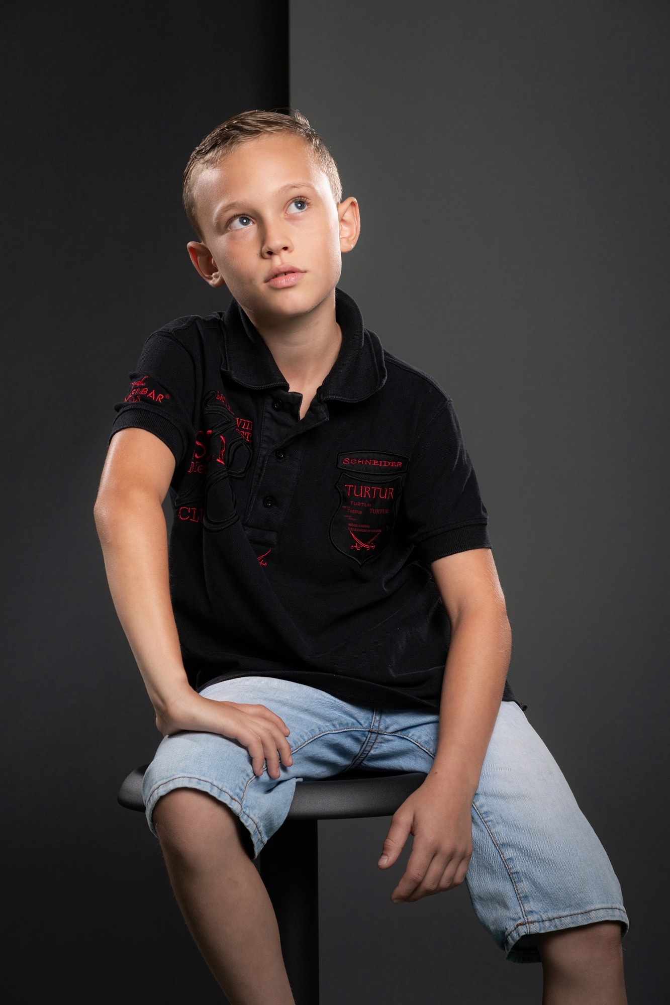An den Fotos erkennen Sie: Ihr Kind kann sein Shooting aktiv mitgestalten. Wir achten immer auf zweierlei: wir geben professionelle Hilfestellungen für natürliche Posen und wir lassen Raum für Spontaneität, um authentische Momente einzufangen.