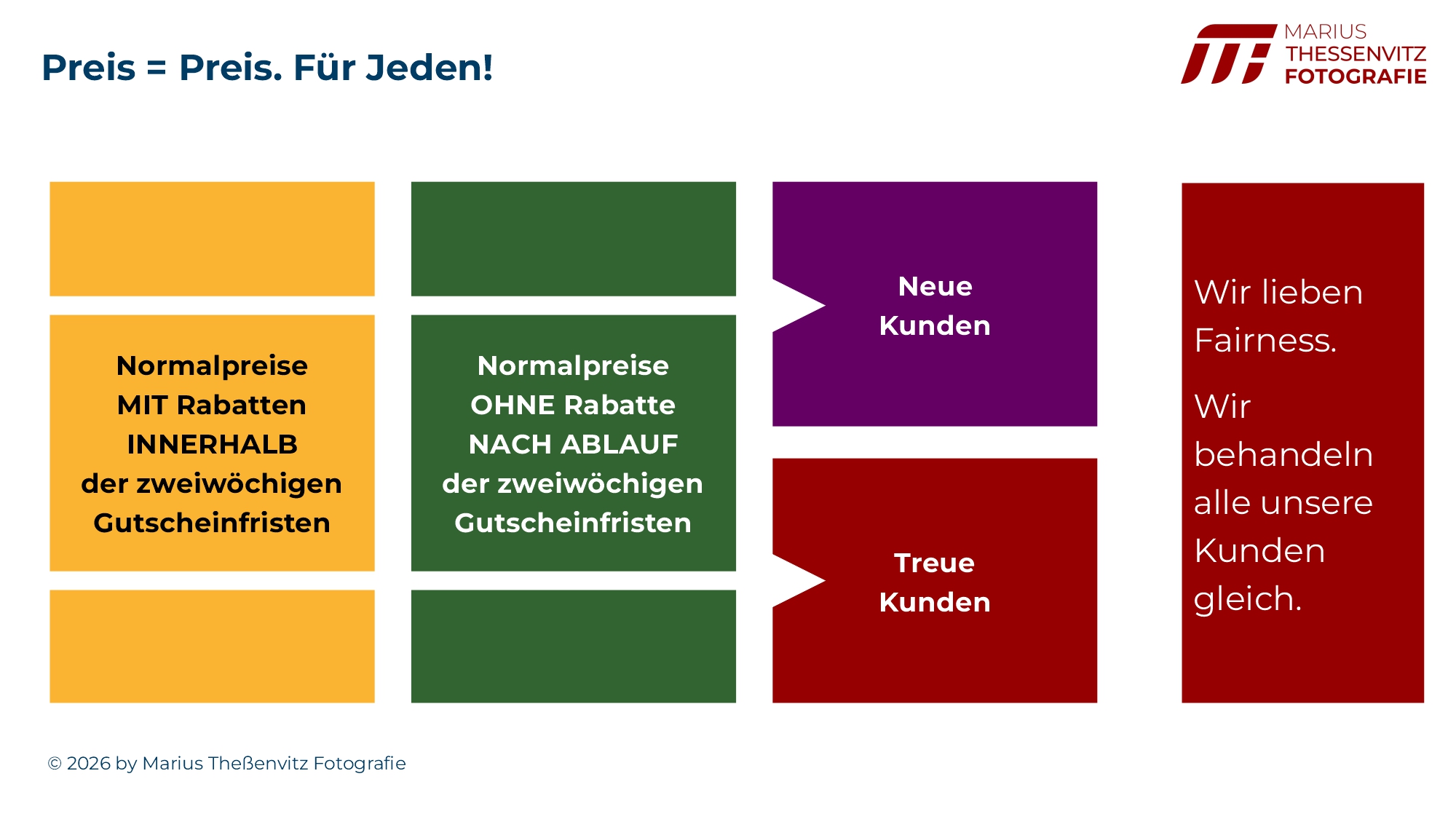 - Jeder Kunde bezahlt für die gleiche Leistung das Gleiche.